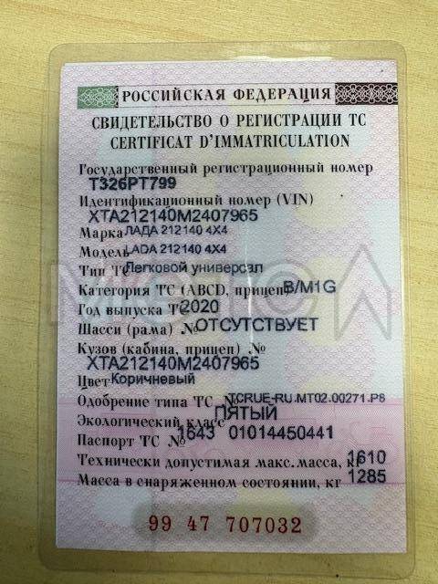 Автомобиль LADA 4x4 (Нива), 2020 г.в., VIN ХТА212140М2407965, гос. номер Т326РТ799