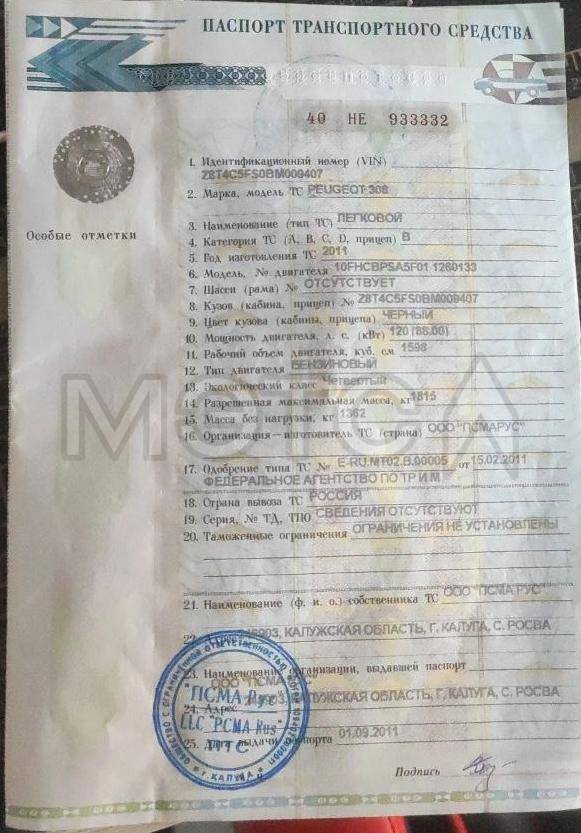 Автомобиль Peugeot 308 2011 г.в., VIN Z8T4C5FS0BM009407, госномер А767УУ86