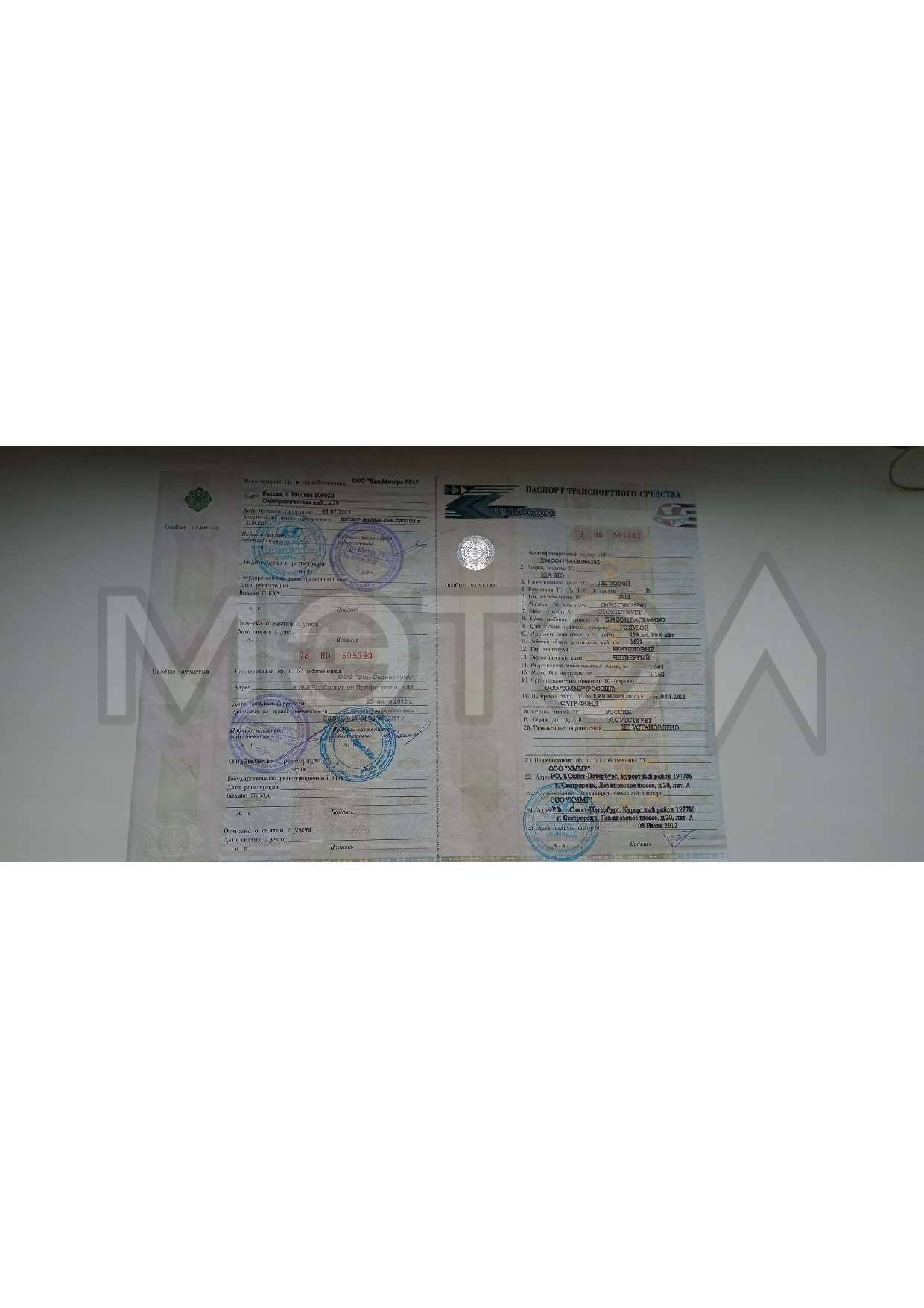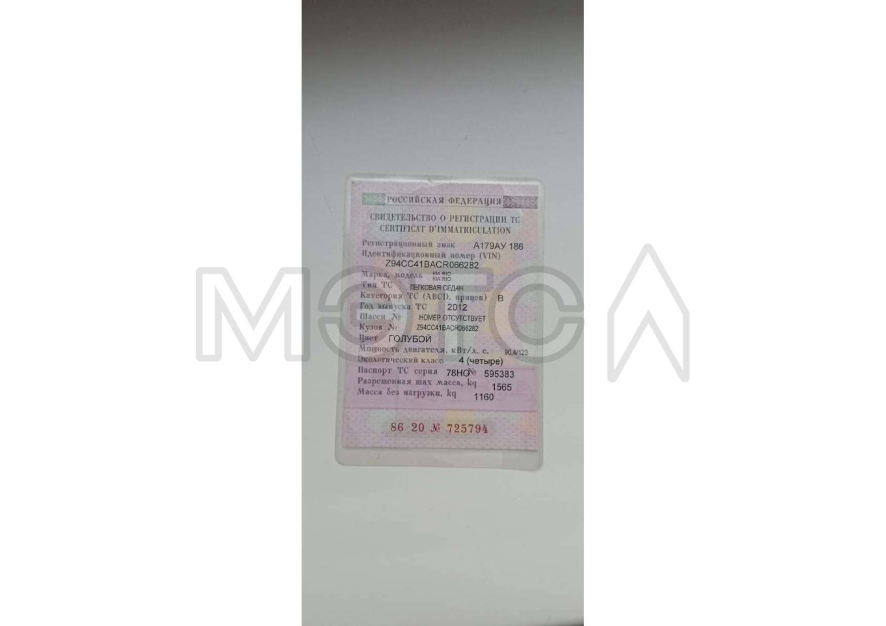 KIA RIO 2012 г., VIN Z94CC41BACR066282, гос. А179АУ186