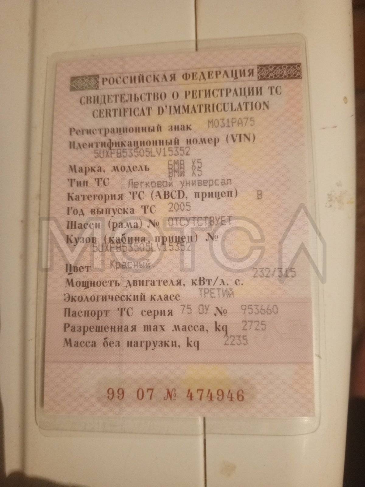 Легковой автомобиль BMW X5, 2005 г.в., VIN SUXFB53505LV15352, пробег 377 178 км