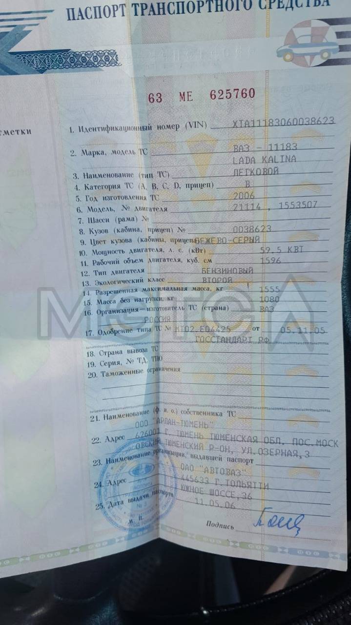 Легковой автомобиль LADA Kalina, 2006 г.в., VIN XTA11183060038623