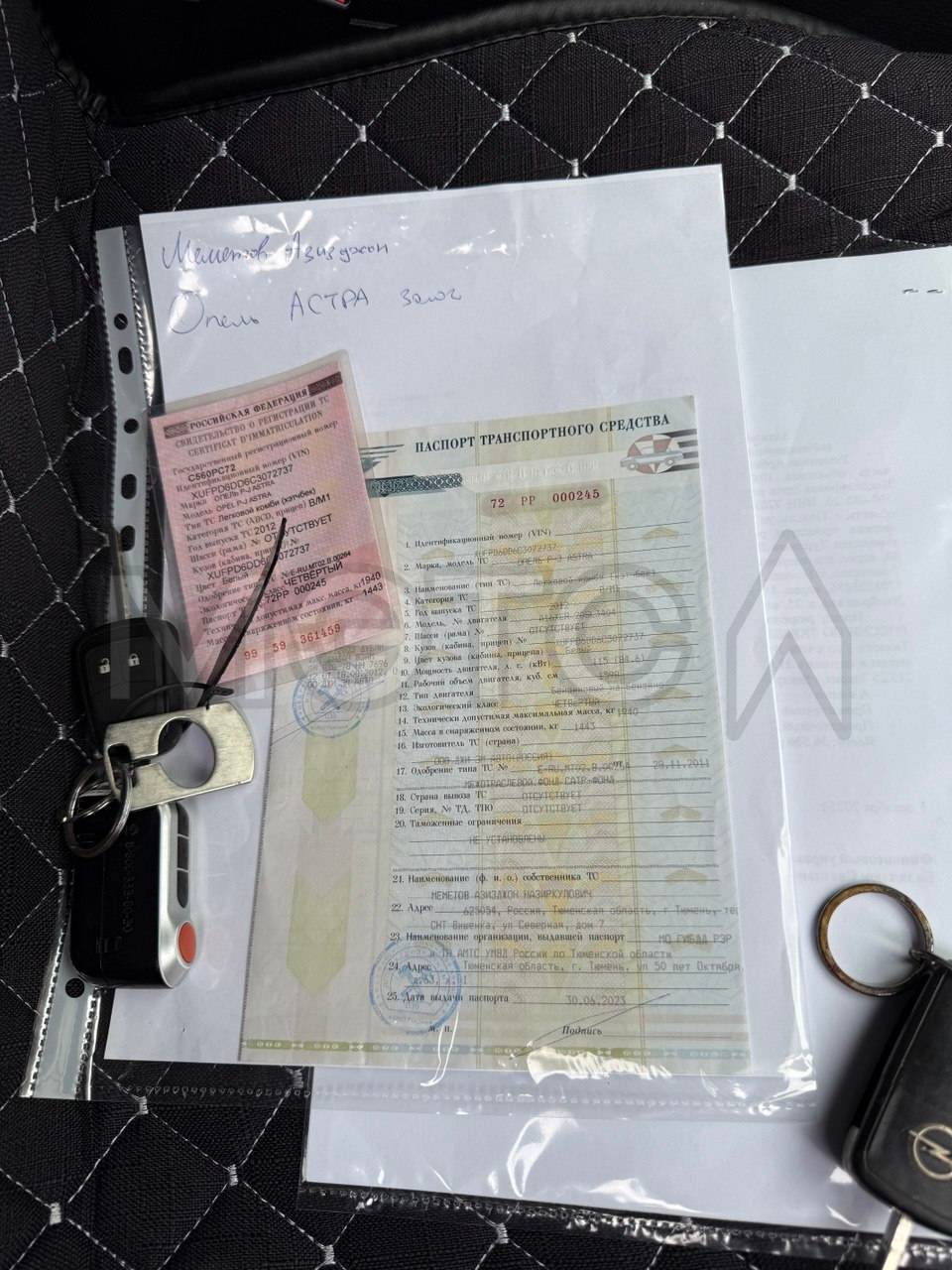 OPEL ASTRA 2012 г.в., VIN XUFPD6DD6C3072737 (нечитаемый), предмет залога